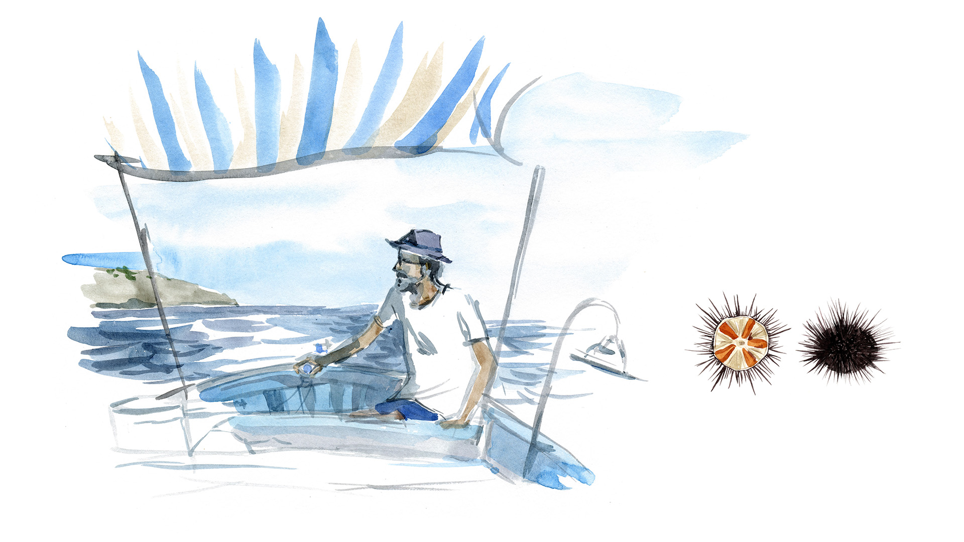 L’eau est calme et limpide ce matin, le ciel bleu azur… Giuseppe nous attend au port avec sa barque traditionnelle de pêcheur… La journée sera chaude, il va faire bon être en mer ! Seuls au monde, bercés par le ronronnement du moteur, l’horizon est notre seule limite… Alterner les baignades entre mer turquoise et grotte d’eau douce, déguster quelques oursins aussitôt pêchés… Les accompagner d’un verre de vin blanc…Et somnoler les yeux mi-clos.